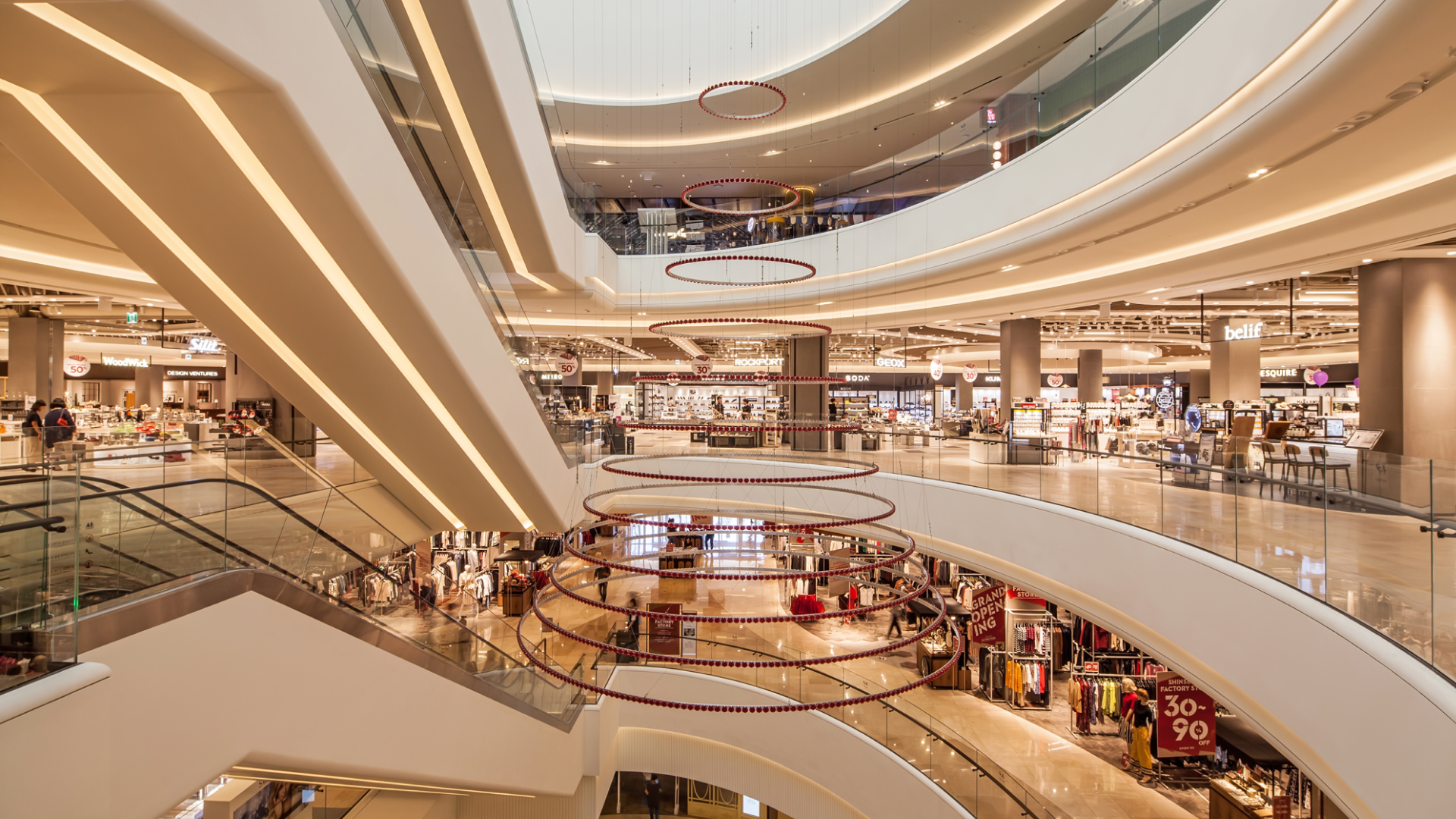 자연채광이 가능한 380m 길이의 채광창을 매장 천장에 적용했으며 쇼핑몰 내 공기 질 관리를 위해 일반 미세먼지 10분의1크기의 미세먼지 까지 차단 할 수 있는 필터도 공조 시스템에 적용